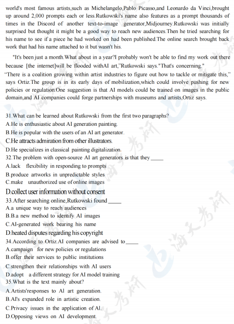 2024考研英语一阅读理解真题